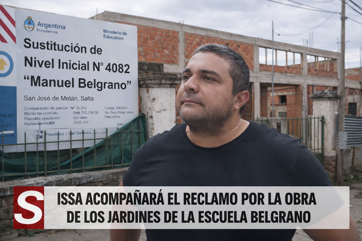 La paralización de la obra del jardín de infantes de la Escuela General Manuel Belgrano volvió a instalar preocupación en San José de Metán. Frente al reclamo de familias y docentes, el intendente José María Issa confirmó que acompañará la manifestación prevista por la comunidad educativa y aseguró que impulsará nuevas gestiones para lograr la finalización del edificio.